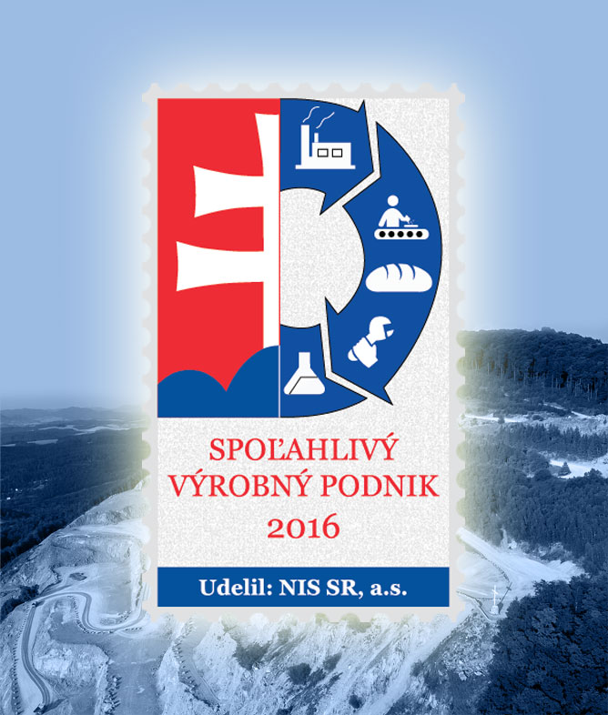 Obtaining the ''Reliable Manufacturing Company 2016'' label for economic health and good payment morale (only 4.1% of companies in Slovakia complied with the demanding criteria), certification of the quality management system, environmental management system and occupational health and safety management system according to the requirements of EN ISO 9001:2015, EN 14001:2015 and OHSAS 18001:2007, the second highest volumes of cement production and sales