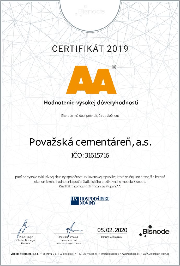 Hodnotenie vysokej dôveryhodnosti "AA" - Bisnode Hospodárske noviny