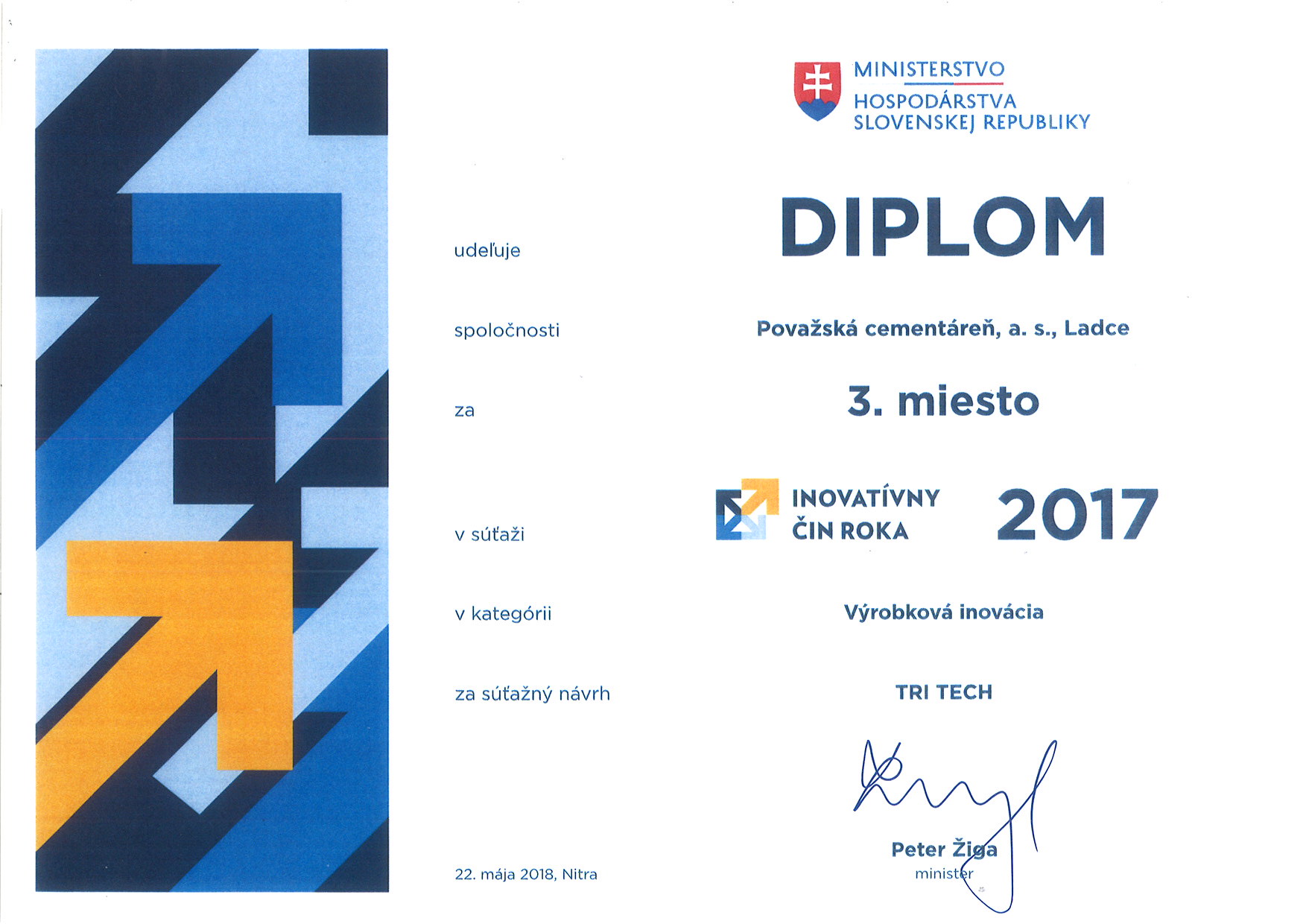 Ocenenie MINISTERSTVA HOSPODÁRSTVA - Inovatívny čin roka 2017 – Výrobková inovácia TRI TECH