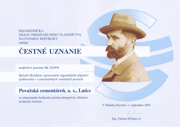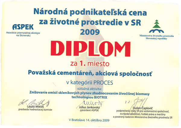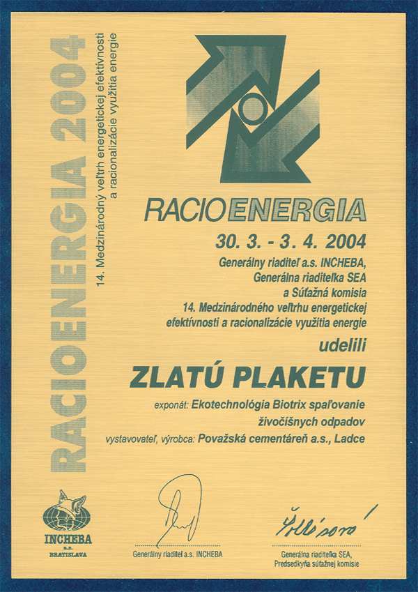 - v roku 2003 – spôsob likvidácie upravených organických odpadov spaľovaním v cementárenských rotačných peciach