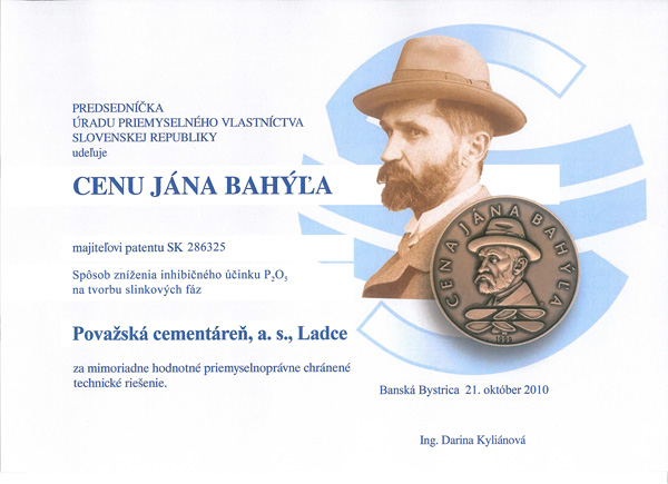 - v roku 2010 – spôsob zníženia inhibičného účinku P2O5 na tvorbu slinkových fáz