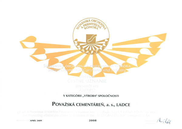 Ocenenie VEĽKÁ CENA SOPK – za uplatňovanie etických princípov v podnikaní